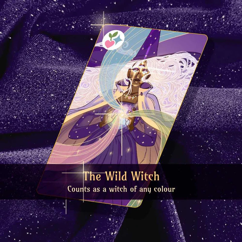 Curses & Covens is an all vs one game where one player takes on the role as the witch hunter, while all other players are towns trying to protect the friendly witches! The aim of the witch hunter is to capture 5 witches, while the towns want to form a coven of three witches of the same suit in one player's hand to win.