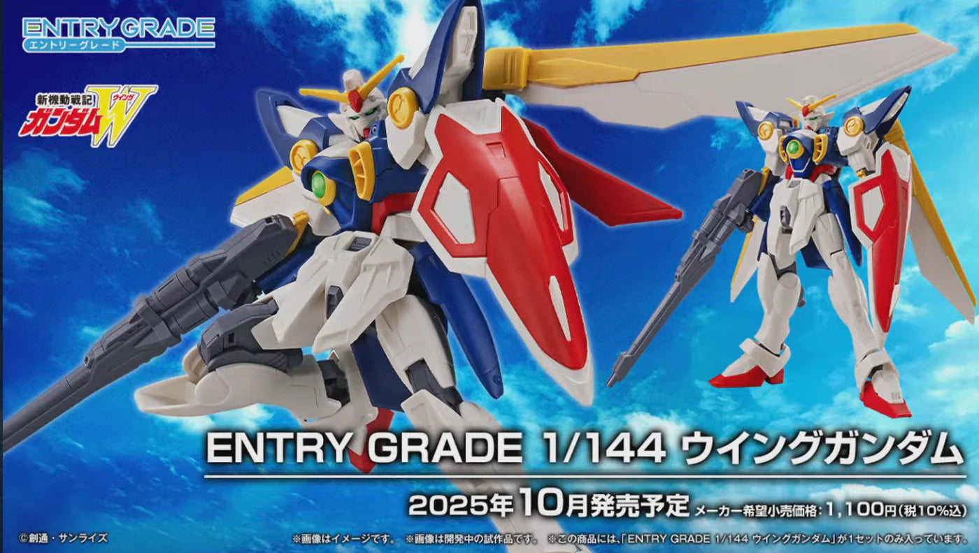 The Wing Gundam from “Mobile Suit Gundam Wing” is now available in Bandai’s “Entry Grade” model-kit lineup, which combines ease of assembly with high quality! Various weapons are included. No stickers are required! The sophisticated parts division allows you to recreate its distinctive color scheme just by assembling it.