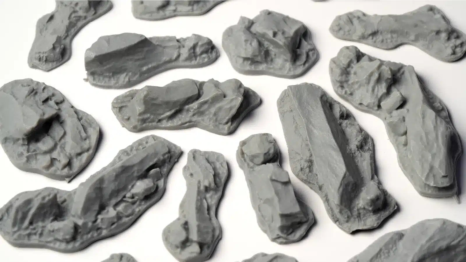 Rocks Basing Bits are scaled clones of different sized clusters of rocks and small stones. These detailed replicas allow you to recreate a very large variety of rocky environments. Best used to simulate rocky fields of acid bedrock outcrops, like schists and slates or harder greywackes and quartzites.