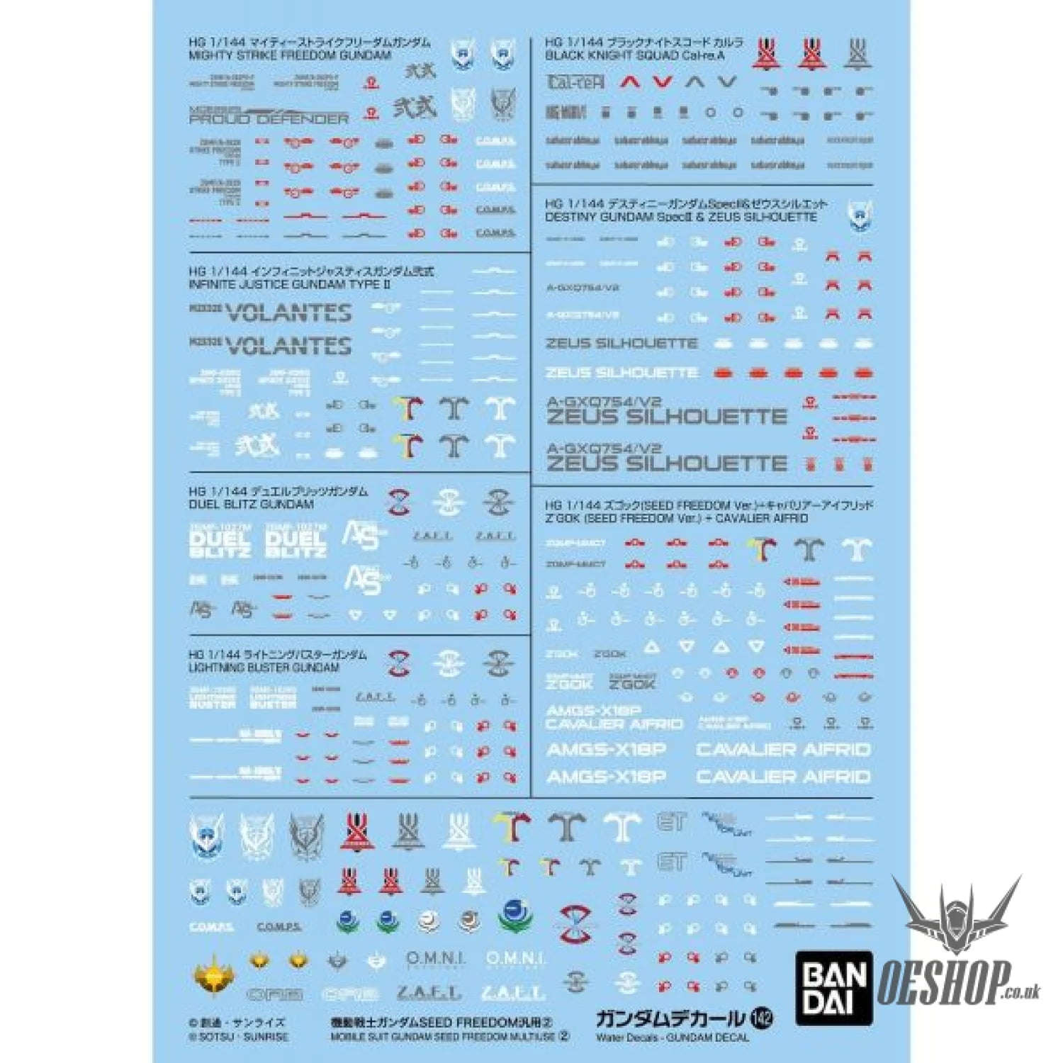 Bandai brings us a new lineup of "Gundam" decals! These waterslide decals are best for 1/144-scale model kits. These highly versatile waterslide decals are compatible with the HG 1/144-scale Mighty Strike Freedom Gundam, HG 1/144-scale Infinite Justice Gundam Type II, HG 1/144-scale Black Knight Squad Cal-re.A, and more! Order yours today!