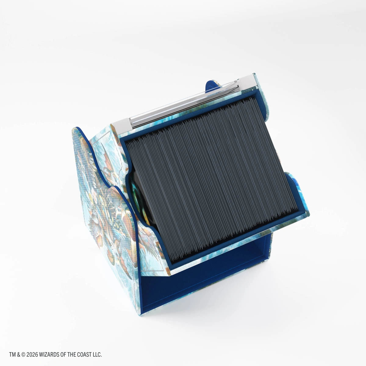 It offers a clear innovation: display your Top Card or Commander without opening the box. The included Slide Card Case keeps your card UV-protected, easily visible for deck recognition, and can be detached for use during gameplay — keeping your card protected at all times. The box holds 100 double-sleeved cards, even with extra thick inner sleeves, or 100 regular double-sleeved cards with additional space for token cards. Equipped with our highly rated Convertible System, the removable cover clips onto the bottom of the box, saving table space and allowing easy card access during play.