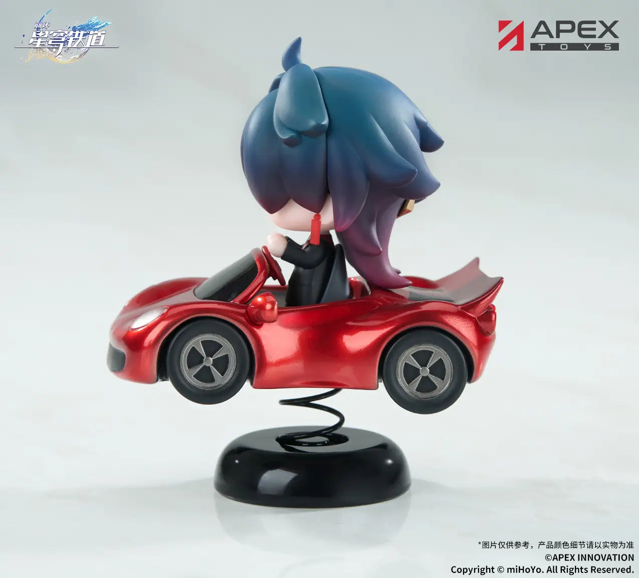 Blade from "Honkai: Star Rail" is riding a fun playground ride that looks like a car! The sleek vehicle bobbles and wiggles on its spring, while Blade clings to the steering wheel grimly. Order him for your own collection today!