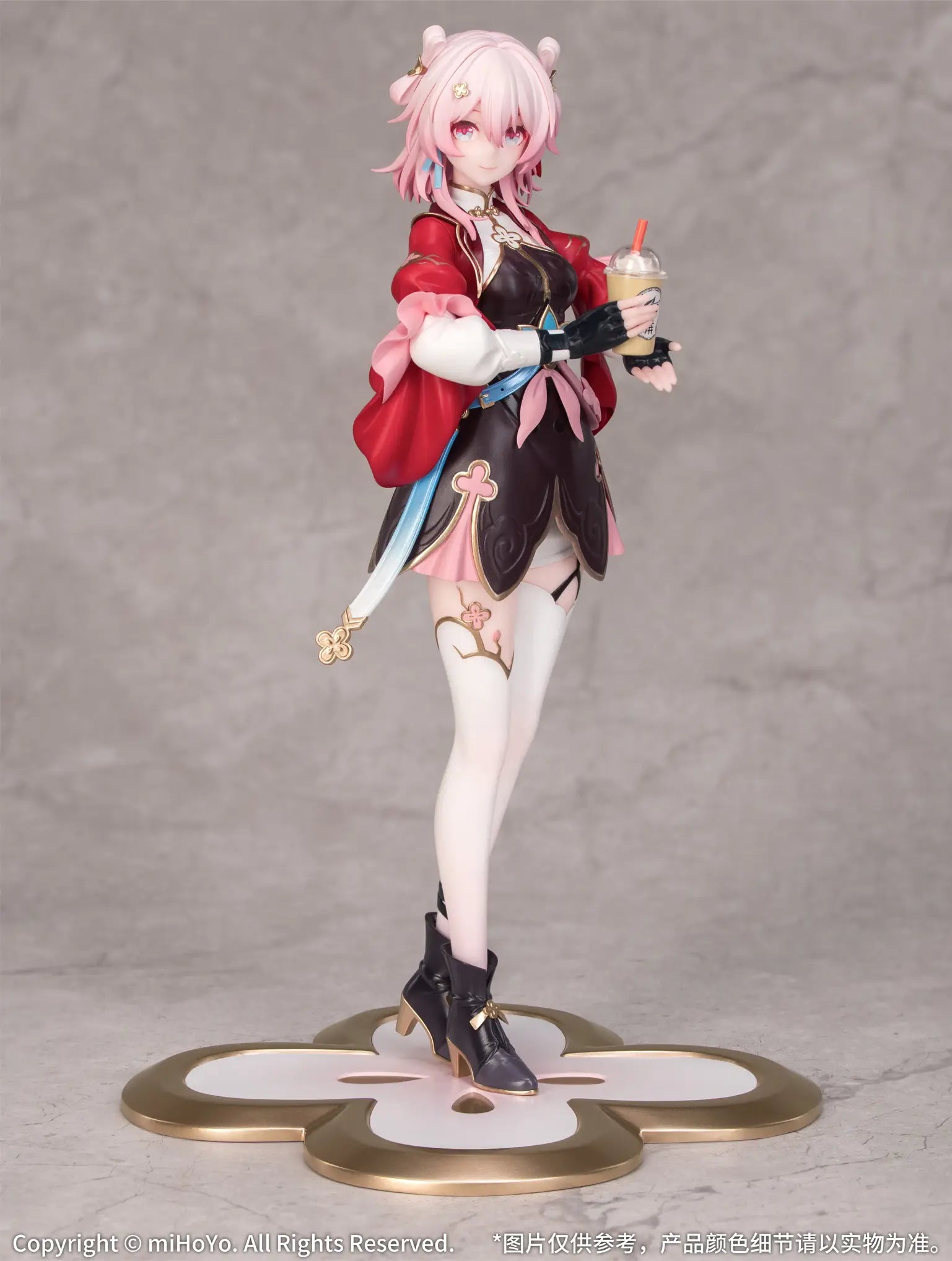 March 7th from the highly popular space fantasy RPG "Honkai: Star Rail" is now part of the "Gift+" figure series from Myethos! She's seen offering tea as she activates her combat skill. Her outfit has been carefully duplicated down to the last detail, and an interchangeable winking face is included; the shape of her base echoes the cherry-blossom motif in her outfit, too. Order her for your own collection today!