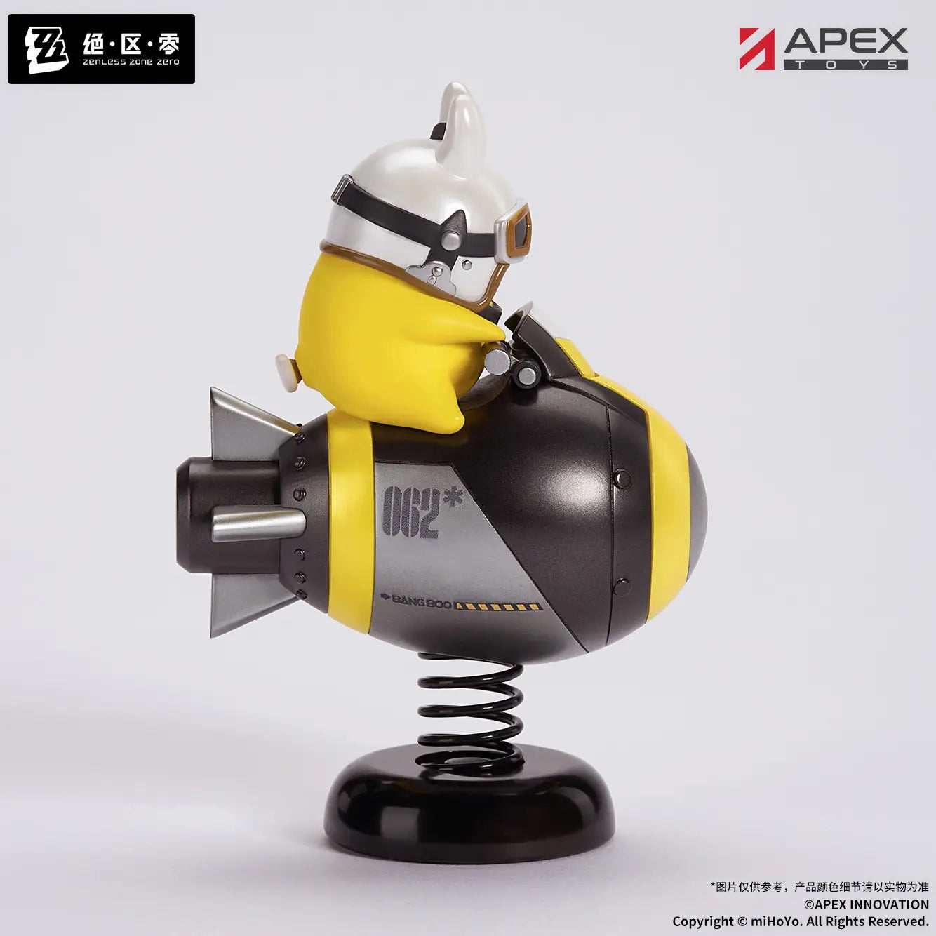 Rocketboo from "Zenless Zone Zero" gets a new "Happy Shake" figure from Apex! He's riding on a rocket (of course) playground toy mounted on a metal spring, wearing a determined expression; tap the figure and watch him sway back and forth! Order yours today!