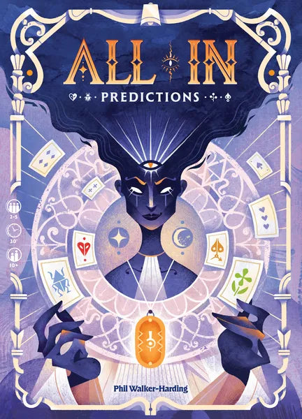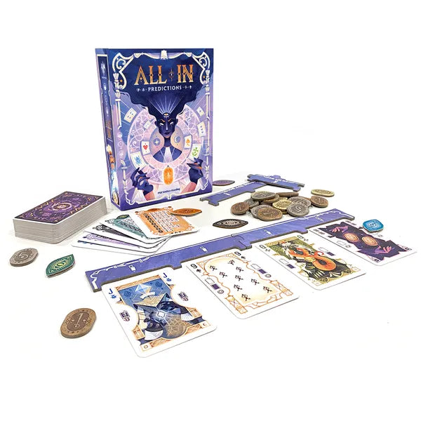 In All In: Predictions, players become gifted foretellers vying to shape destiny itself. Combine hand management with strategic foresight in this fast-paced game inspired by classic poker in which only one prediction will unfold. Play cards, bend probabilities, and guess who holds the strongest hand to claim the pot.