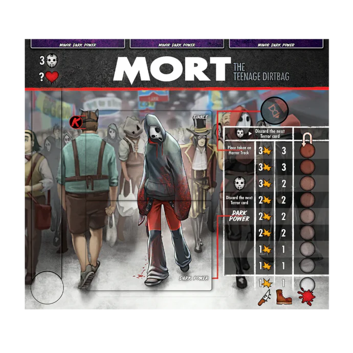 Mort the Teenage Dirtbag has come with one purpose and one purpose alone: to sow chaos. He brought masks of all his favorite Final Girl killers and began taking victims, one at a time, wearing a different mask each time. At the end of it, he would put on his own mask and kill his one true target... YOU!