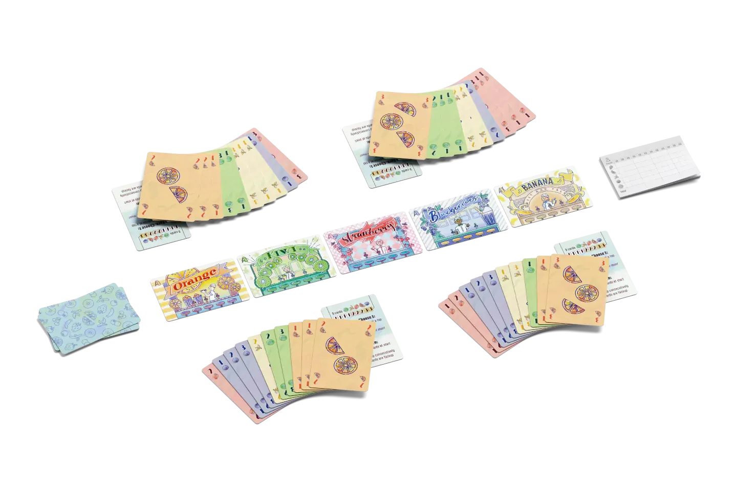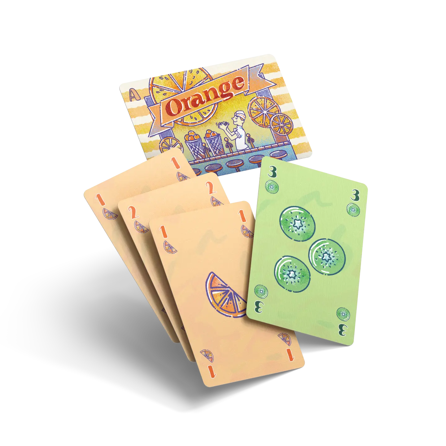 In Soda Jerk, you’ll be dealt a hand of delicious soda ingredient cards, including strawberry, blueberry, banana, kiwi, and orange. On your turn, either: