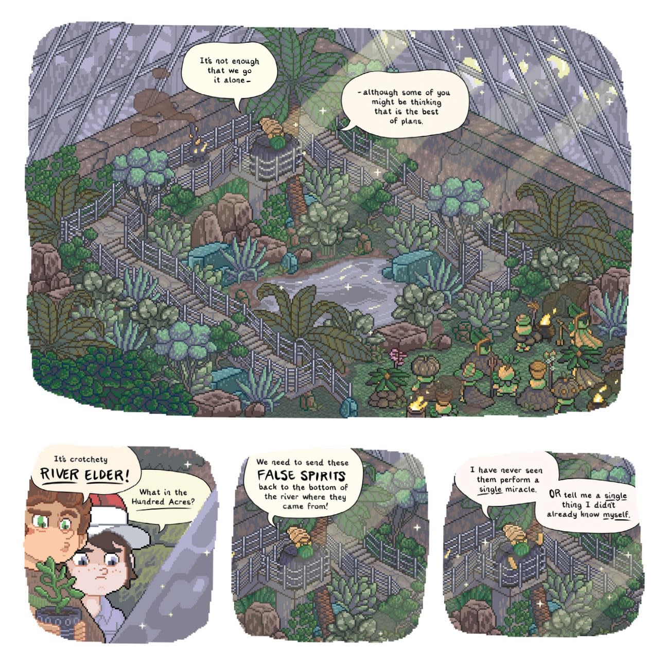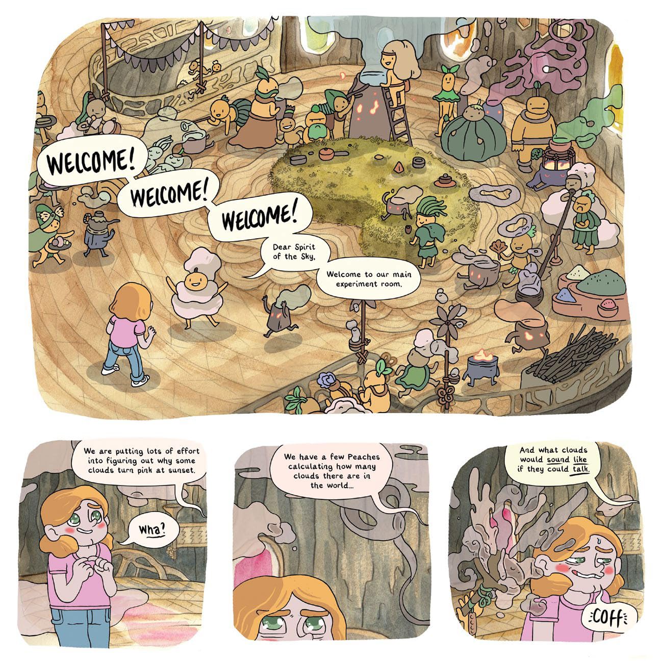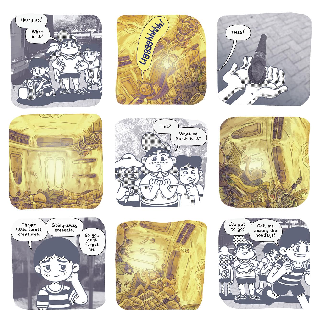But their plans for sleepovers, fantasy games, and romance are thrown out the window when the whole gang falls into a river and wakes up in a village of fantastic creatures. Hailed as magical spirits, threatened by lizards, and trained in the mysterious arts of tea-brewing, these kids must find their way home—if they don’t throttle each other first.