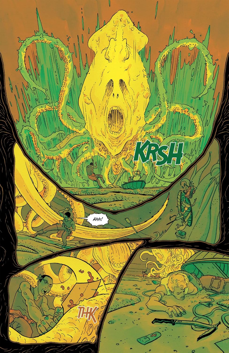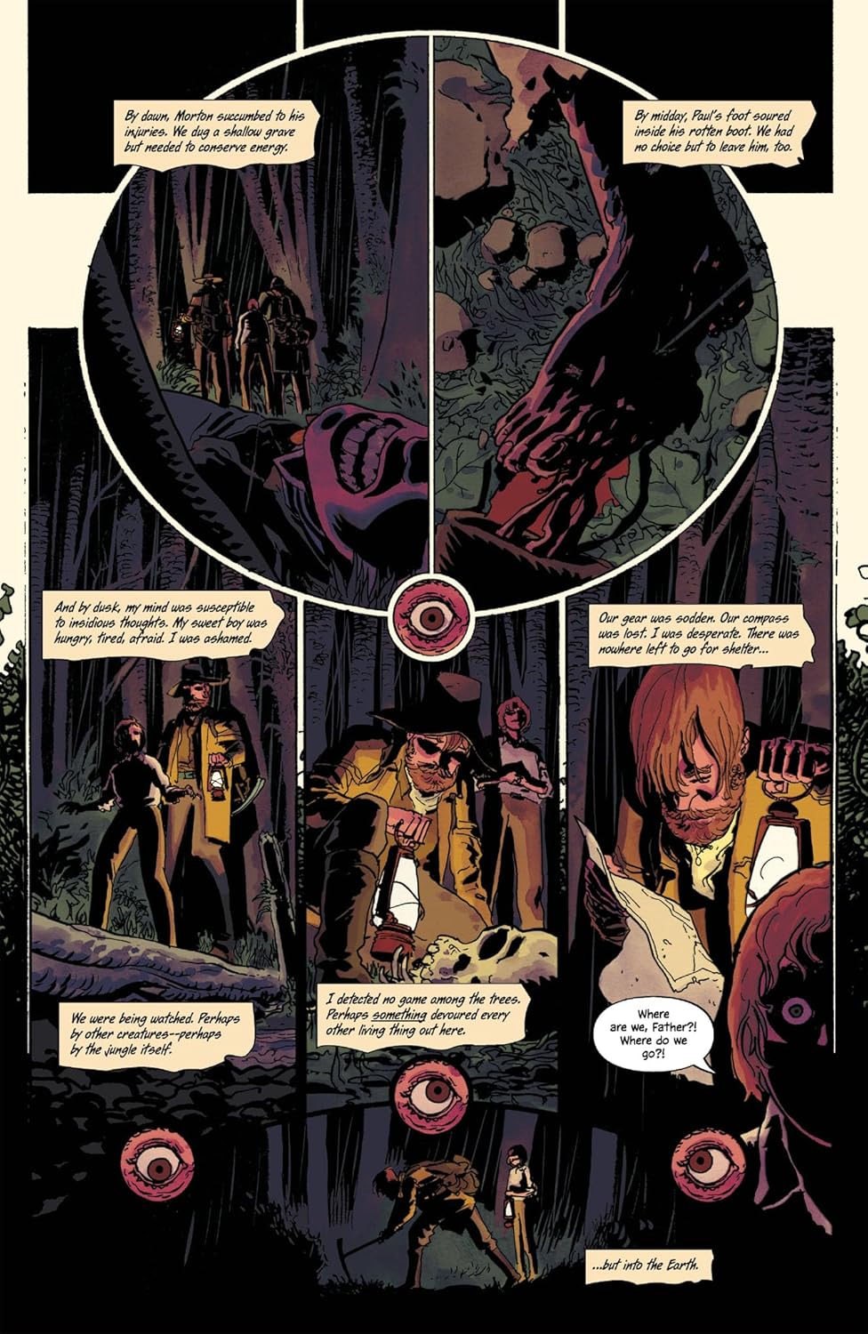 From critically acclaimed writer Zac Thompson and visionary artist Hayden Sherman comes part two of the S.I.N.E.W expedition’s ill-fated journey into a Lovecraftian labyrinth.