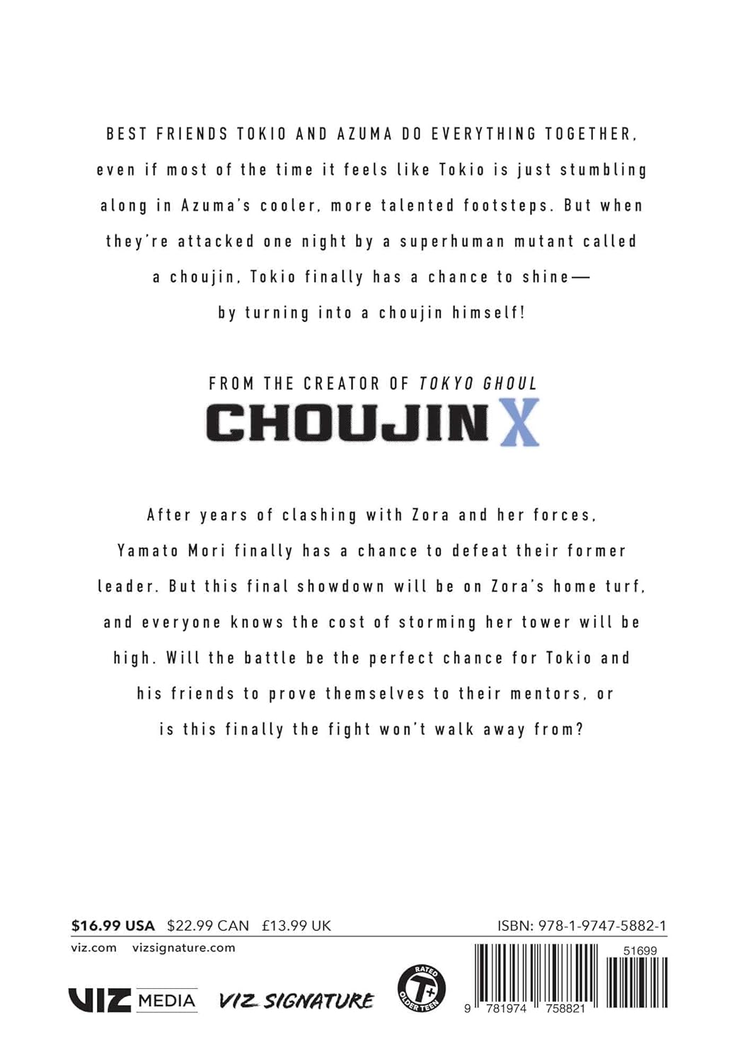 Best friends Tokio and Azuma do everything together, even if most of the time it feels like Tokio is just stumbling along in Azuma’s cooler, more talented footsteps. But when they’re attacked one night by a superhuman mutant called a choujin, Tokio finally has a chance to shine—by turning into a choujin himself!