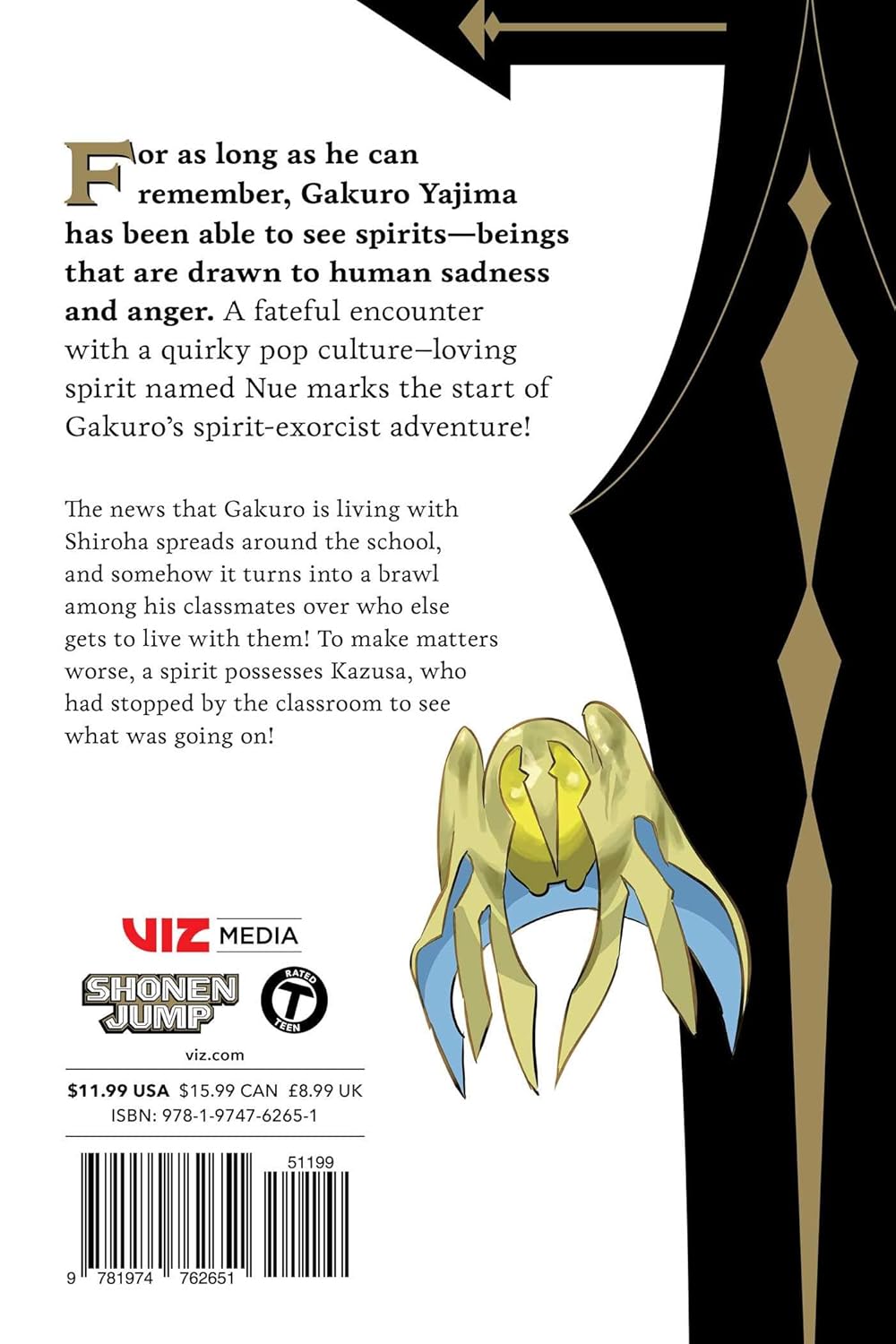 For as long as he can remember, Gakuro Yajima’s been able to see spirits—beings that are drawn to human sadness and anger. A fateful encounter with a quirky pop culture–loving spirit named Nue marks the start of Gakuro’s spirit-exorcist adventure!