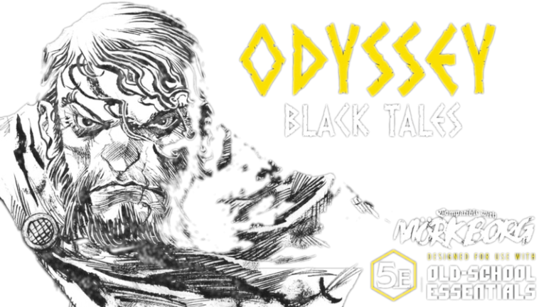 Odyssey – Black Tales is a rules-light tabletop RPG for 1, 2 or more players compatible with 5e, Old School Essentials and Mörk Borg. Characters are part of Ulysses’ crew, the greatest liar in history, and rank in his small army of marauders.