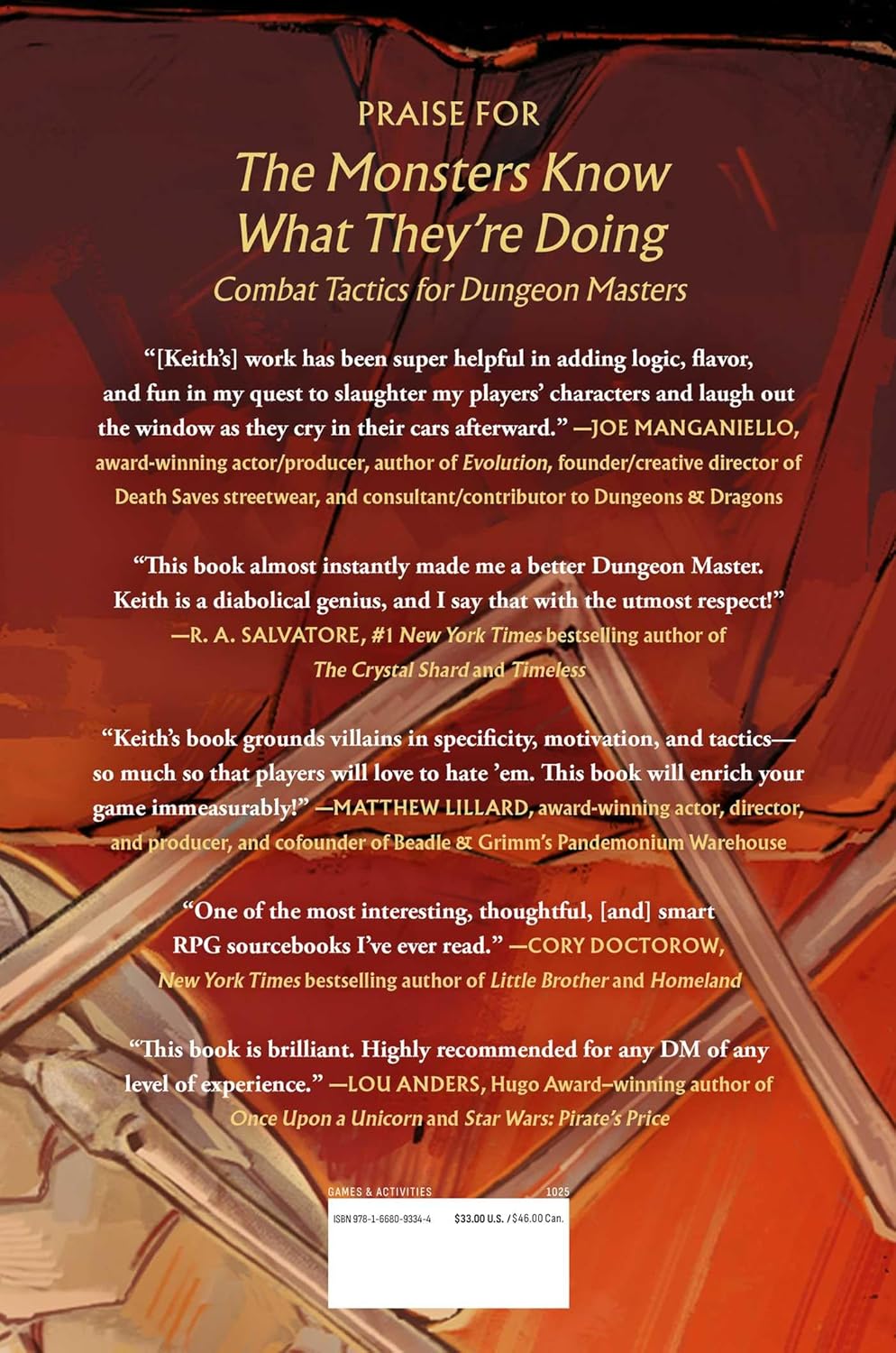 In The Monsters Know What They’re Doing, the essential tactics guide for Dungeon Masters, and its sequel, MOAR! Monsters Know What They’re Doing, Keith Ammann reverse-engineered hundreds of fifth edition Dungeons & Dragons monsters to help DMs prepare battle plans for combat encounters before their game sessions.
