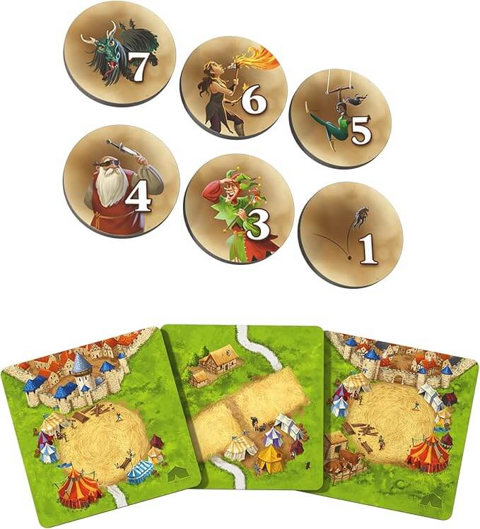 In this 2025 refresh expansion for Carcassonne, a traveling circus visits the countryside. Let your meeples participate in the greatest spectacles and stack them as artists forming an impressive pyramid. If your ringmistress is nearby, you will score even more points.