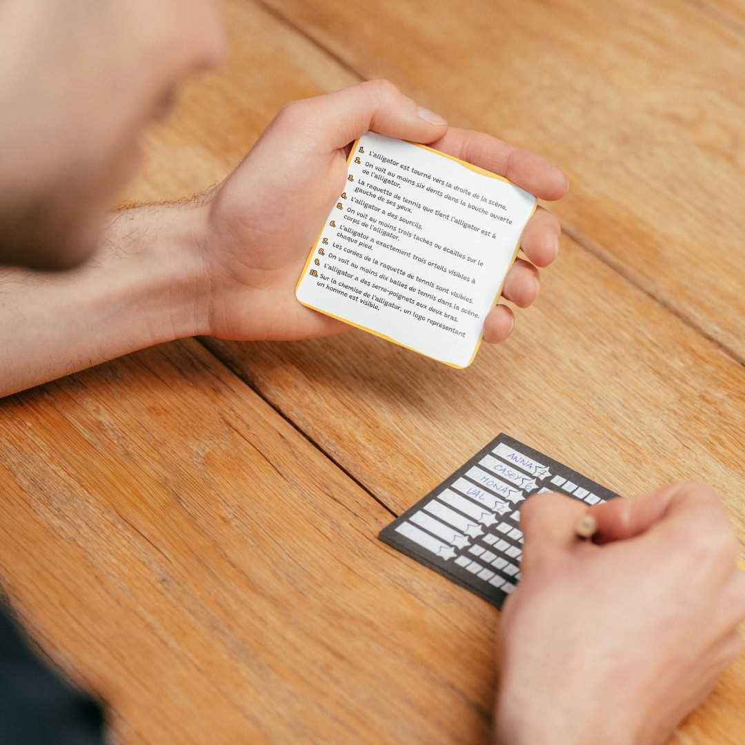 In Duplik, one player describes a picture while everyone else tries to draw it - but it’s not about being an artist! Players score points by matching hidden details from the original image. Did you remember the number of stars? The hat on the dog? With 90 seconds to draw and lots of laughs guaranteed, Duplik is the perfect game for families, parties, and anyone who loves fun over perfection!