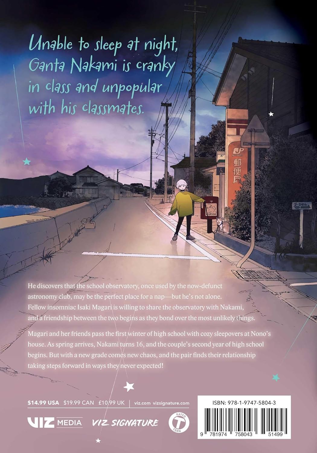 Unable to sleep at night, Ganta Nakami is cranky in class and unpopular with his classmates. He discovers that the school observatory, once used by the now-defunct astronomy club, may be the perfect place for a nap—but he's not alone. Fellow insomniac Isaki Magari is willing to share the observatory with Nakami, and a friendship between the two begins as they bond over the most unlikely things.