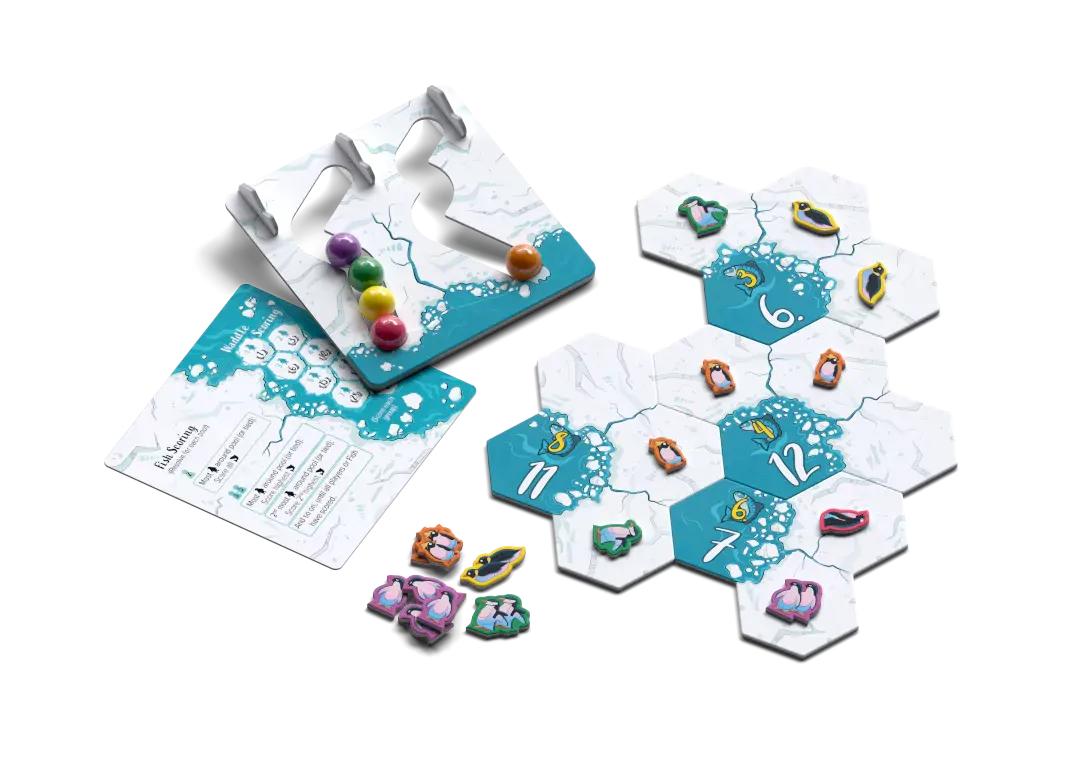 The newest title in the Allplay 1-Minute to Teach line! The board's tight! Catch fish, build groups of penguins, and manipulate turn order strategically to win!